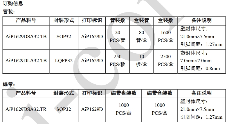 AIP1629A/B/C/D型號特性