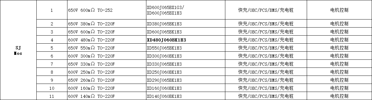 XD480J060BK1H3 芯達茂 SJ Mos 600V 480mΩ TO-220F 快充/OBC/PCS/BMS/充電樁