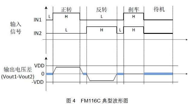 電路采用 H 橋結(jié)構(gòu), 內(nèi)置功率 MOSFET 開關(guān),可實現(xiàn)對負載直流電機正轉(zhuǎn)、反轉(zhuǎn)、剎車以及待機四個功能的控制,剎車功能能使負載電機快速停止轉(zhuǎn)動,待機功能使電路靜態(tài)功耗極低( 小于 1uA)。