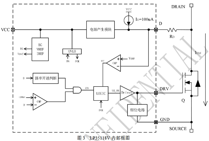 LP35118V的DRV引腳與同步整流MOSFET的柵極連接,通過檢測漏極電壓的變化來控制MOSFET的導通和關斷。
