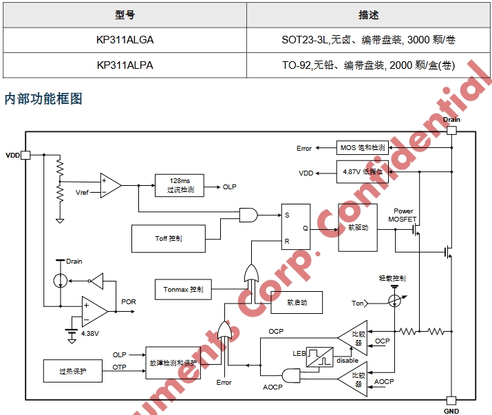 KP311AWPA芯片功能描述及內部框架圖講解(小家電電源高效解決方案)