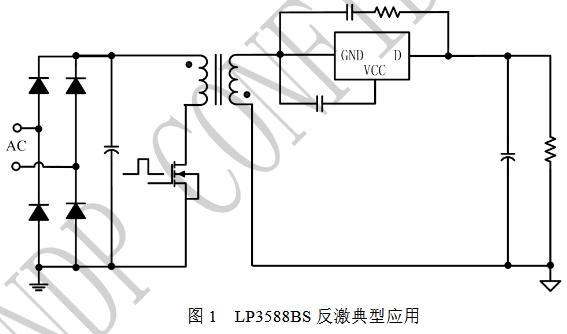 LP3588BSF適用于多種開關電源設計,以下是其在充電器中的典型應用電路:
