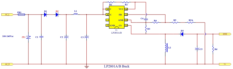 LP2801B輸出電壓可調(diào)12V150mA Buck方案設(shè)計