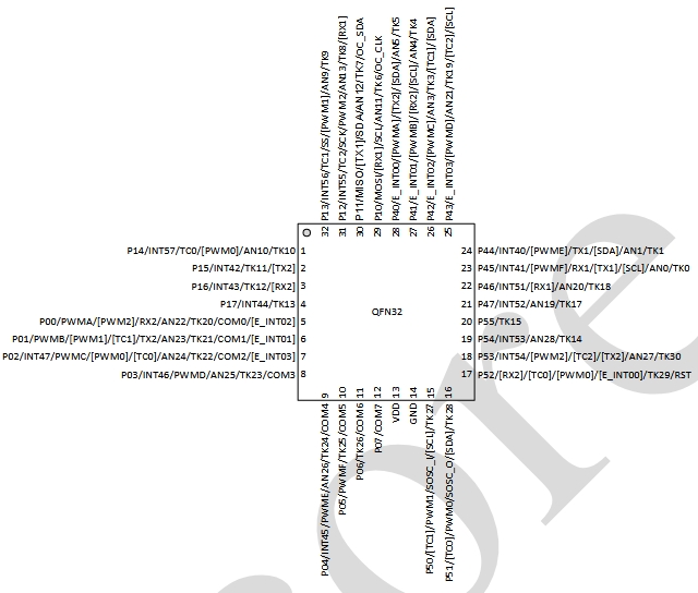QFN32 引腳排列圖: