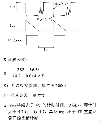 關(guān)斷條件:同步整流一旦開通,在比較器屏蔽時(shí)間 Tb 內(nèi)不進(jìn)行關(guān)斷動(dòng)作。當(dāng) Ton>Tb&The Vds voltage >-5mV,關(guān)斷同步。