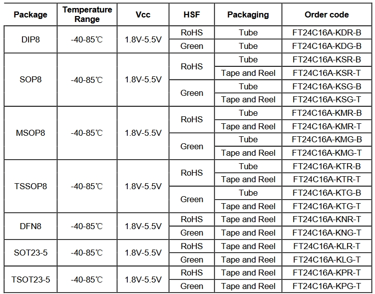 FT24C16A-KLR提供5引腳SOT-23封裝,滿足不同設計需求。