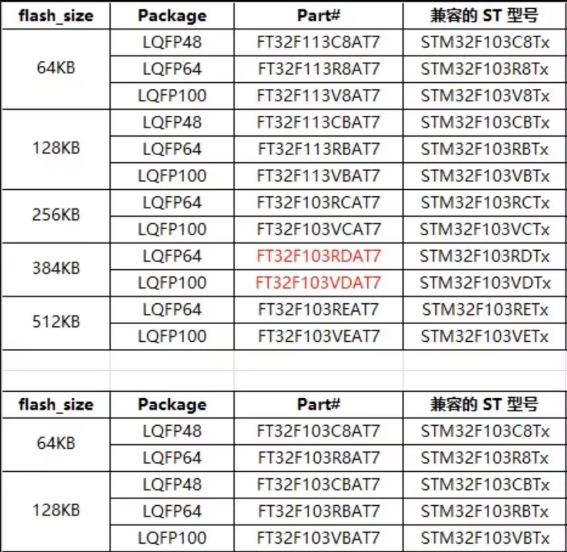 需要升級到 128 KB Flash → FT32F103RBAT7