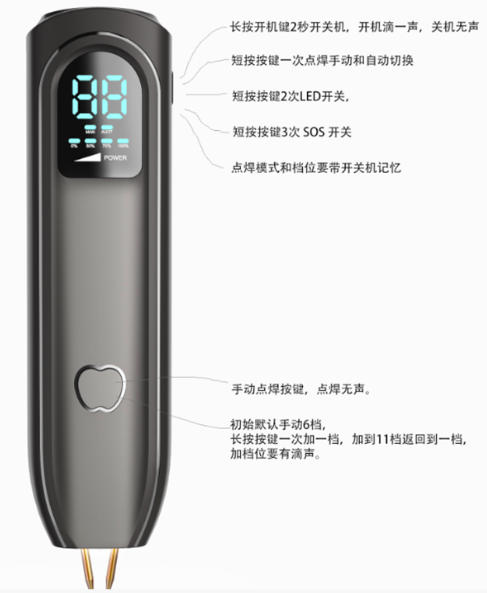 任何模式下連續(xù)短按2次,開關(guān)照明LED,方便昏暗環(huán)境對準(zhǔn)焊點(diǎn),狀態(tài)掉電記憶。