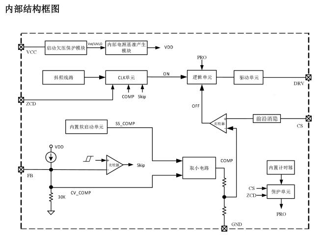 | 4 | CS | 峰值電流檢測(cè),內(nèi)置220ns前沿消隱 |