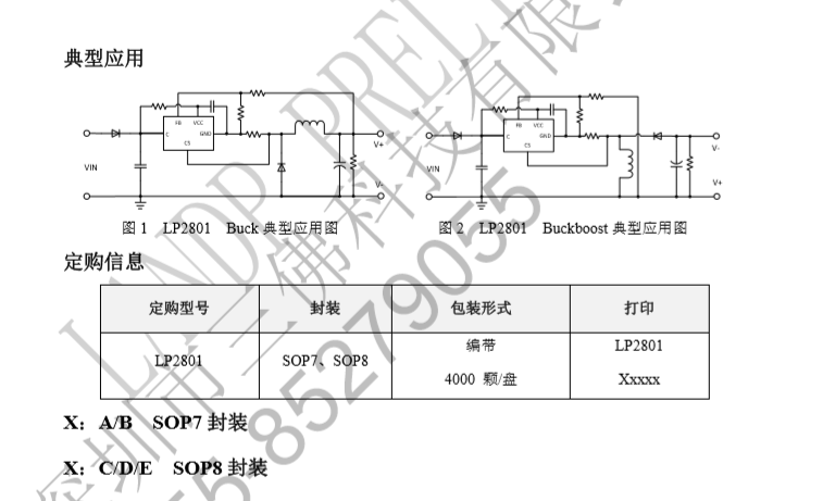 LP2801B為非隔離電源芯片,輸出電壓可調(diào),電流150MA,封裝:SOP7