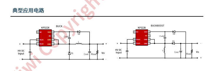 KP321X 系列是一款高性能低成本 PWM 控制功率開(kāi)關(guān),適用于離線式小功率降壓型應(yīng)用場(chǎng)合,外圍電路簡(jiǎn)單、器件個(gè)數(shù)少。同時(shí)產(chǎn)品內(nèi)置高耐壓MOSFET 可提高系統(tǒng)浪涌耐受能力。