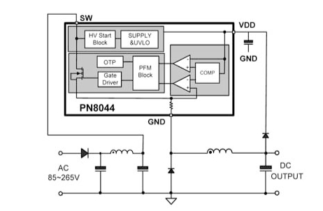 PN8044半封閉式穩(wěn)態(tài)輸出功率5.4W @230VAC