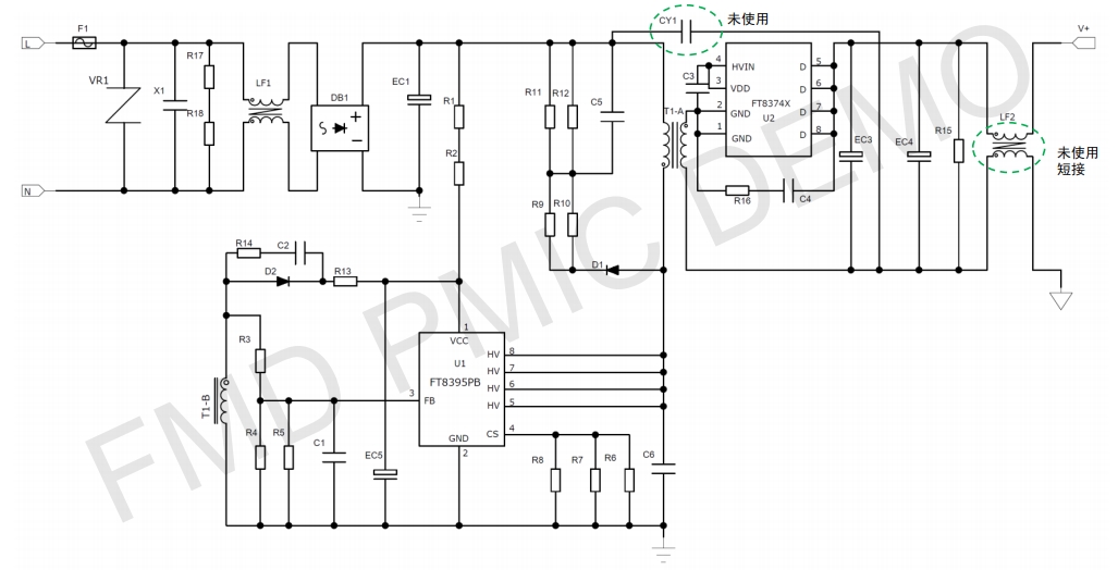 FT8395PB2和FT8374FB的組合為六級無Y適配器電源提供了一個高性能、高效率的解決方案。這種設計不僅滿足了現代電子設備對電源效率和穩定性的需求,而且通過簡化的外圍電路設計降低了成本,是電源適配器設計的優選方案。