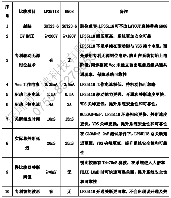 綜上所述,LP35118不僅完全兼容MP6908,而且還提供了多項額外的優勢,包括高耐壓、快速關斷、集成VCC供電技術、整流管開通判定技術、多種工作模式兼容、外部元器件少以及過壓鉗位和欠壓保護。這些特性使得LP35118成為一個強大的替代選項,能夠在保持與MP6908兼容性的同時,提供更高的性能和可靠性。