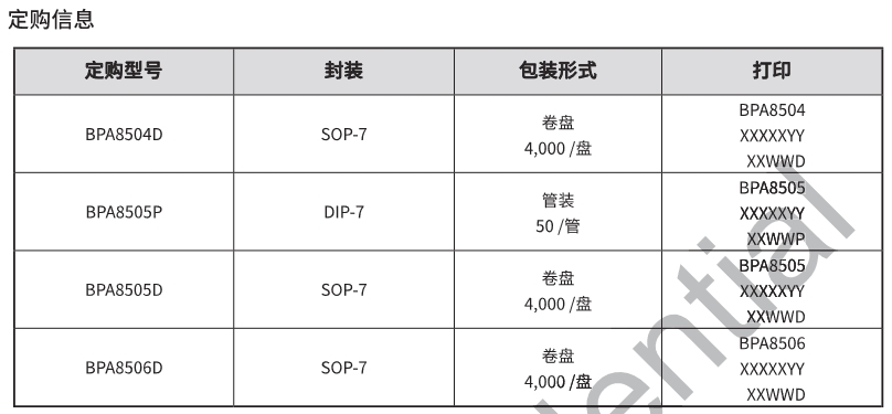 BPA8506D系列芯片的技術規(guī)格如下: