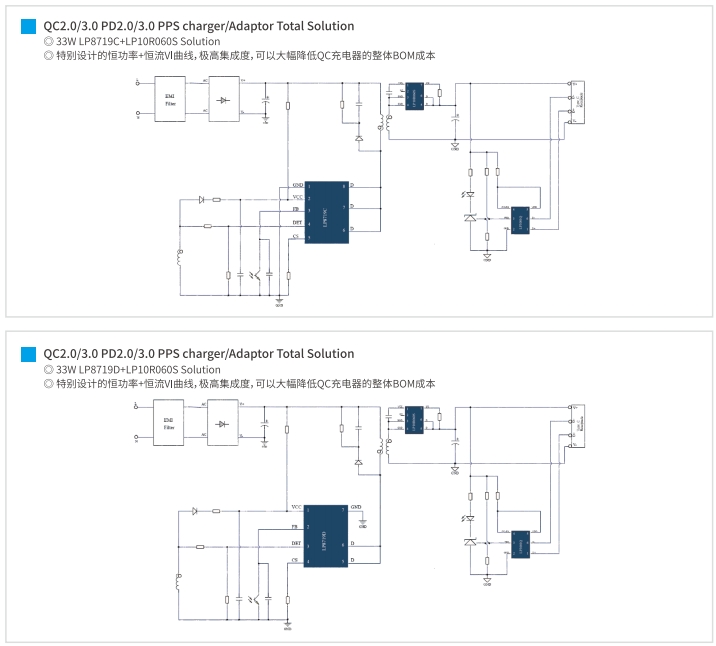 33W QC快速充電方案:LP8719C/D+LP10R060S
