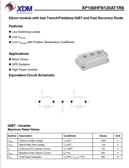 XP150HFN120AT1R6 芯達(dá)茂 國(guó)產(chǎn)IGBT功率模塊150A 1200V 62mm
