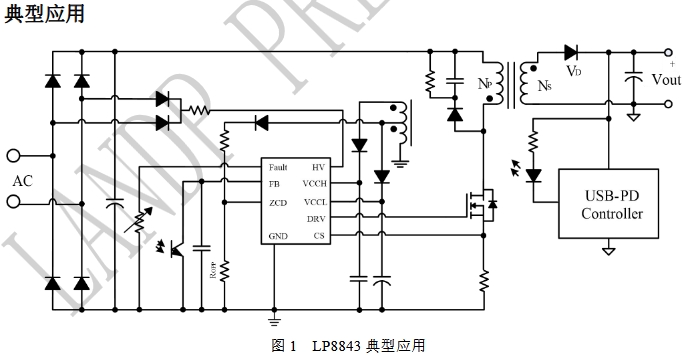 LP8843推薦應(yīng)用功率為36W至150W,這覆蓋了從小型個(gè)人電子設(shè)備到較大功率需求的電子設(shè)備的廣泛應(yīng)用。其高效率的電源管理能力,使其在PD快充和AC-DC適配器等領(lǐng)域中表現(xiàn)出色。